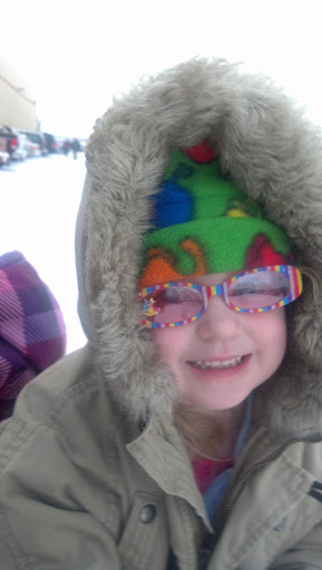 Celia's life is a constant narrative, so I could write a lengthy monologue daily that would be hilarious. But nowadays, I only think to capture the funny if it's book-ended by quiet moments or if she says it more than once. She wakes up every morning, comes upstairs to put on her crown and dancing skirt, and then starts the day. Below is her at Costco in 4 degree weather. Always the diva.